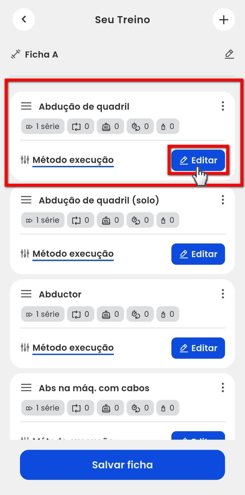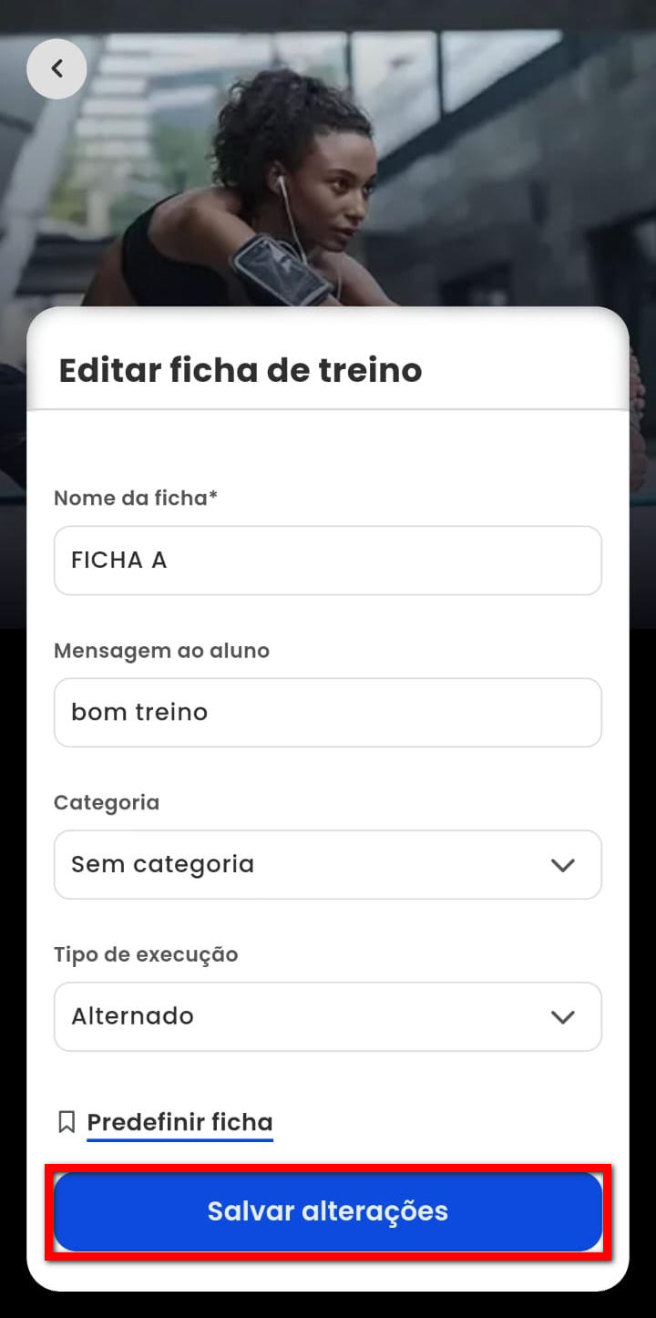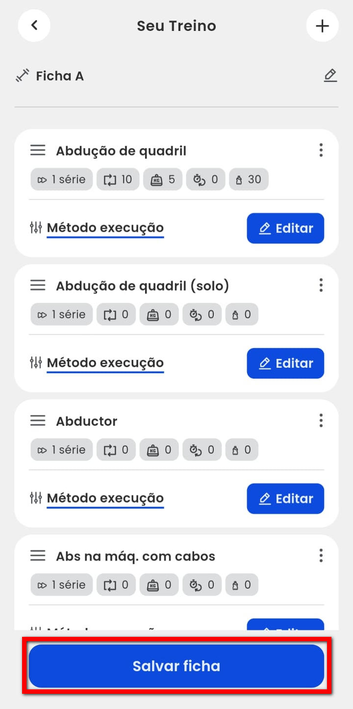 4.3. Para editar alguma informação nas atividades da ficha de treino, clique em "Editar" na atividade desejada.
