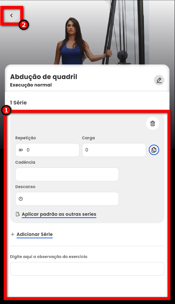4.2.1. Em seguida clique no ícone para editar as configurações da ficha de treino;