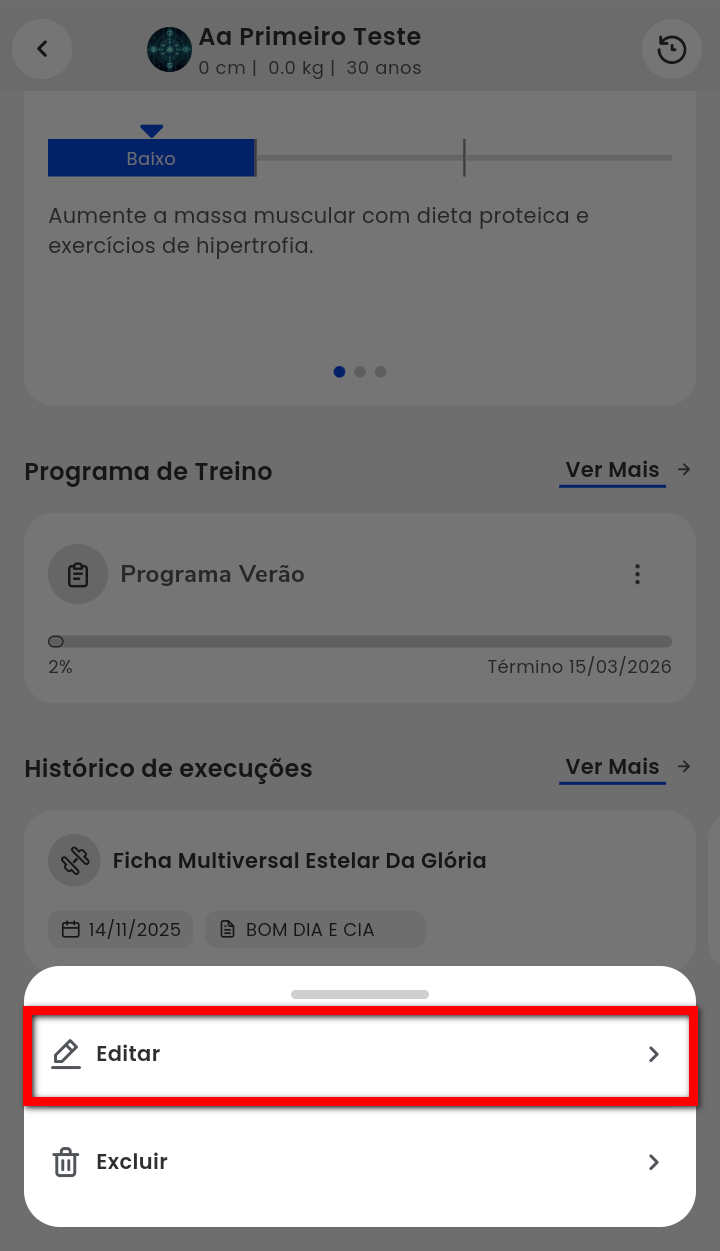 Existem casos onde é necessário realizar a edição do treino de um aluno, seja do programa, da ficha ou das atividades, para atender às necessidades específicas de cada aluno.