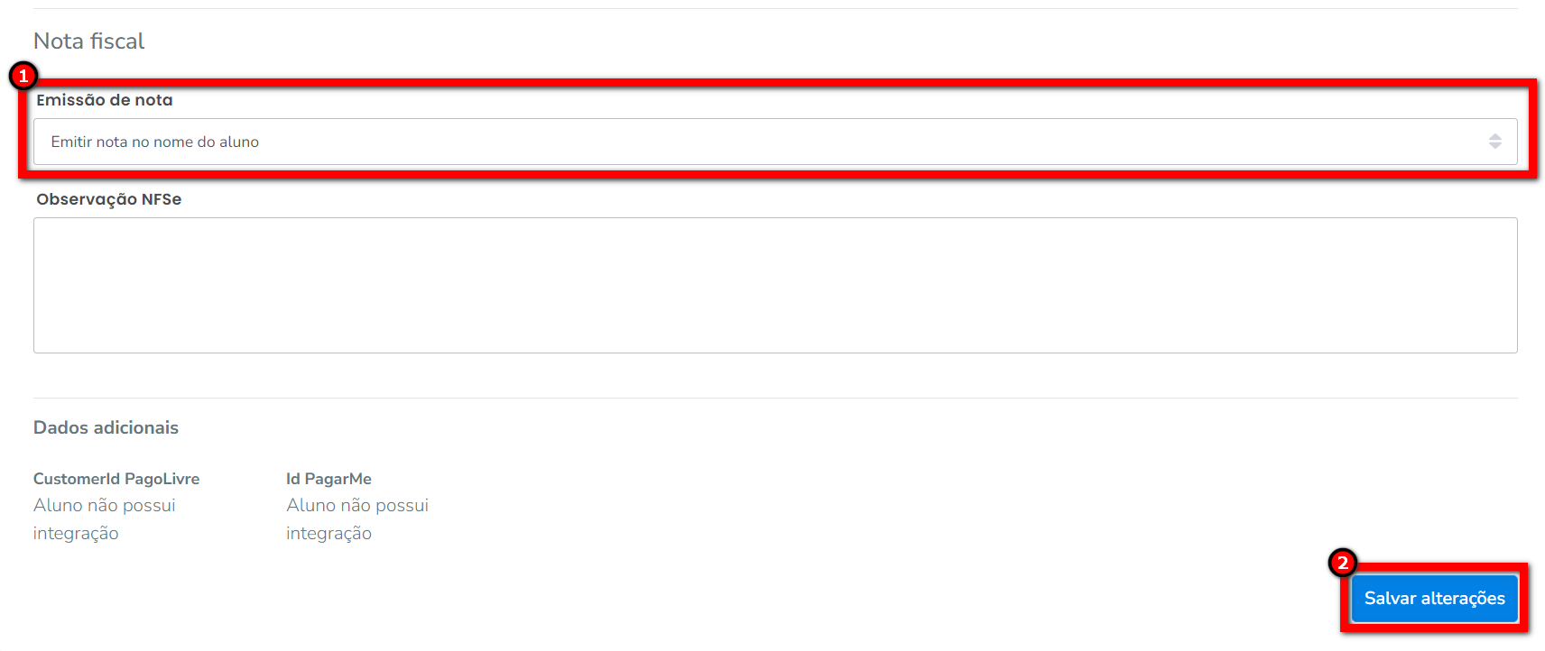 Com essa funcionalidade, a nota fiscal pode ser emitida no nome do aluno, mesmo que o pagador oficial seja outra pessoa.
