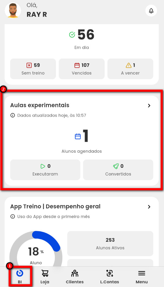 1. No menu “BI” do aplicativo, localize o indicador "Aulas experimentais";