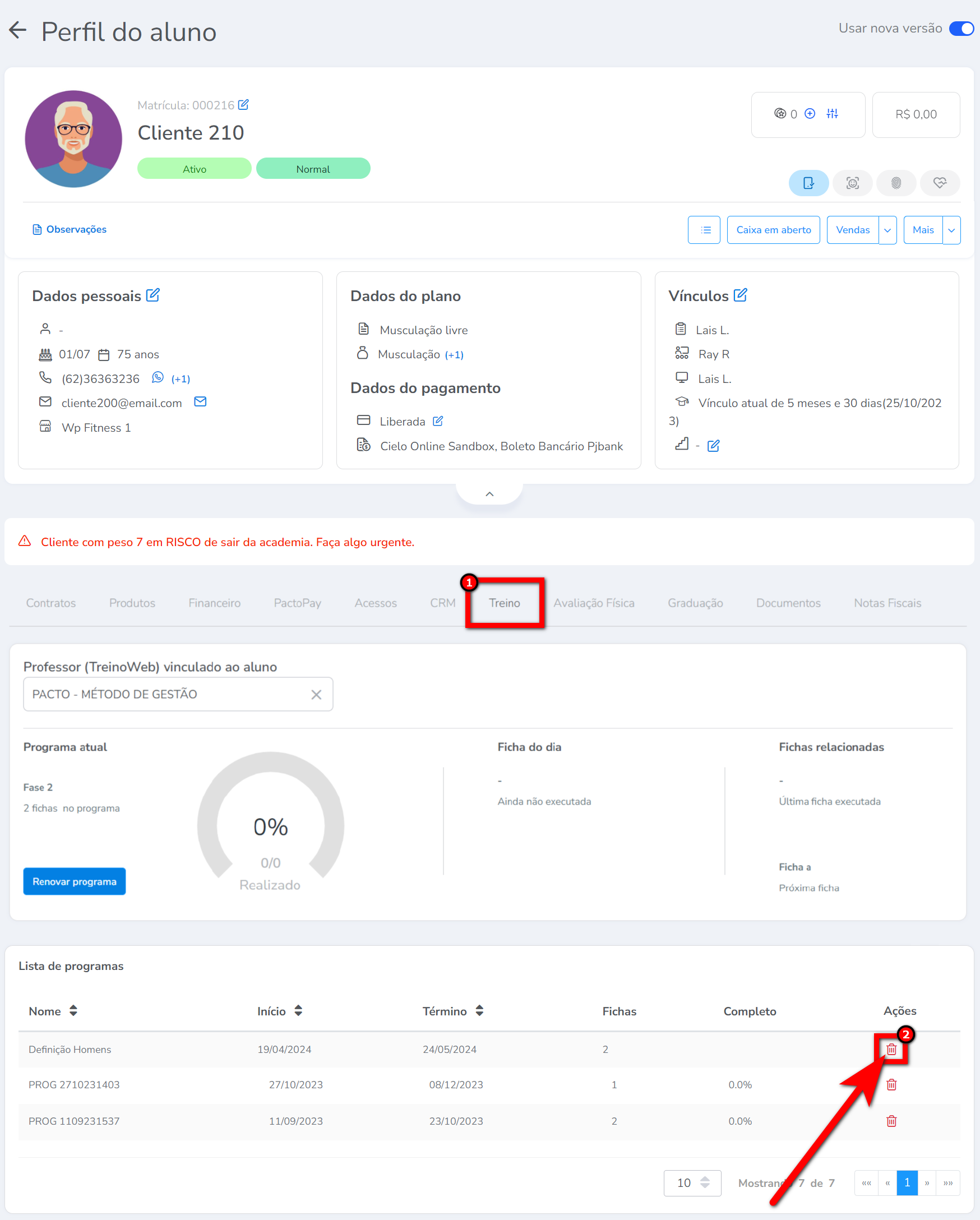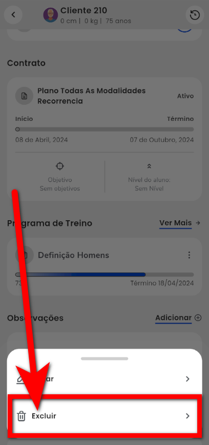 Neste conhecimento você terá o passo a passo de como realizar a exclusão do programa de treino lançado para o aluno.
