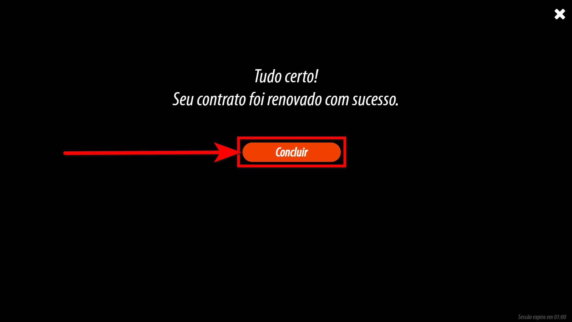 7. Pronto, será apresentada a mensagem que o plano foi renovado, basta clicar em "Concluir".