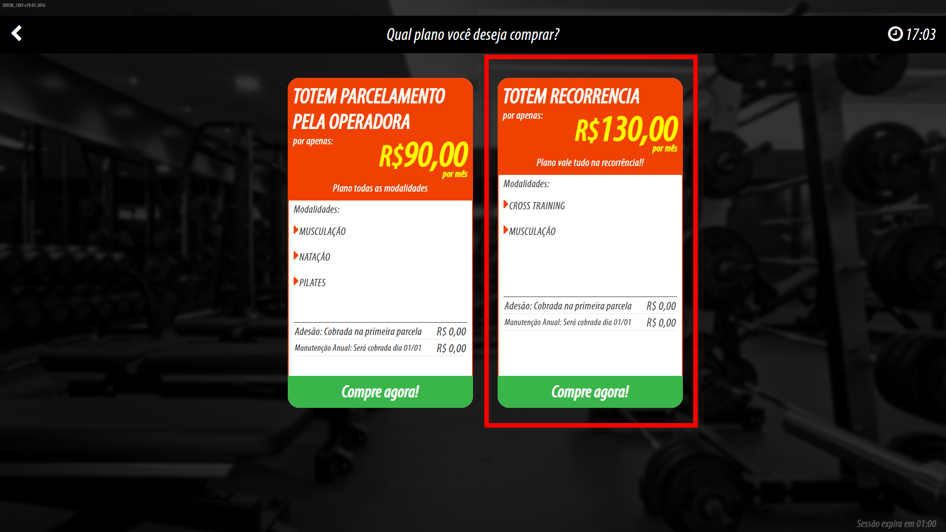 5. Serão apresentados os planos configurados para o Autoatendimento, basta clicar sobre o plano desejado;