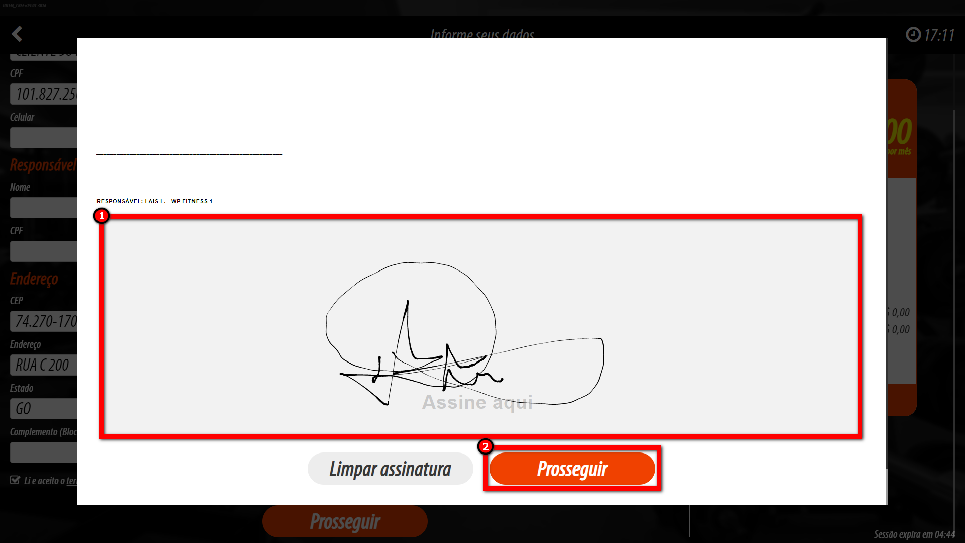 5. Será apresentado o contrato do plano, onde o cliente deve ler e assinar o contrato. Após clicar em "Prosseguir";