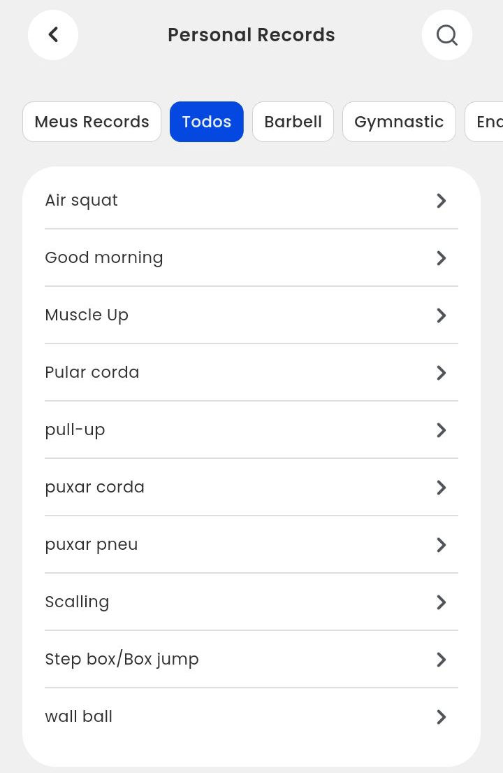 Neste indicador o cliente consegue também acessar seu "Personal Records", onde pode consultar seus records já informados ou registrar novos records realizados.