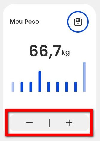 Observação: para diminuir o peso basta clicar no ícone de menos, para aumentar o peso basta clicar no ícone de mais.