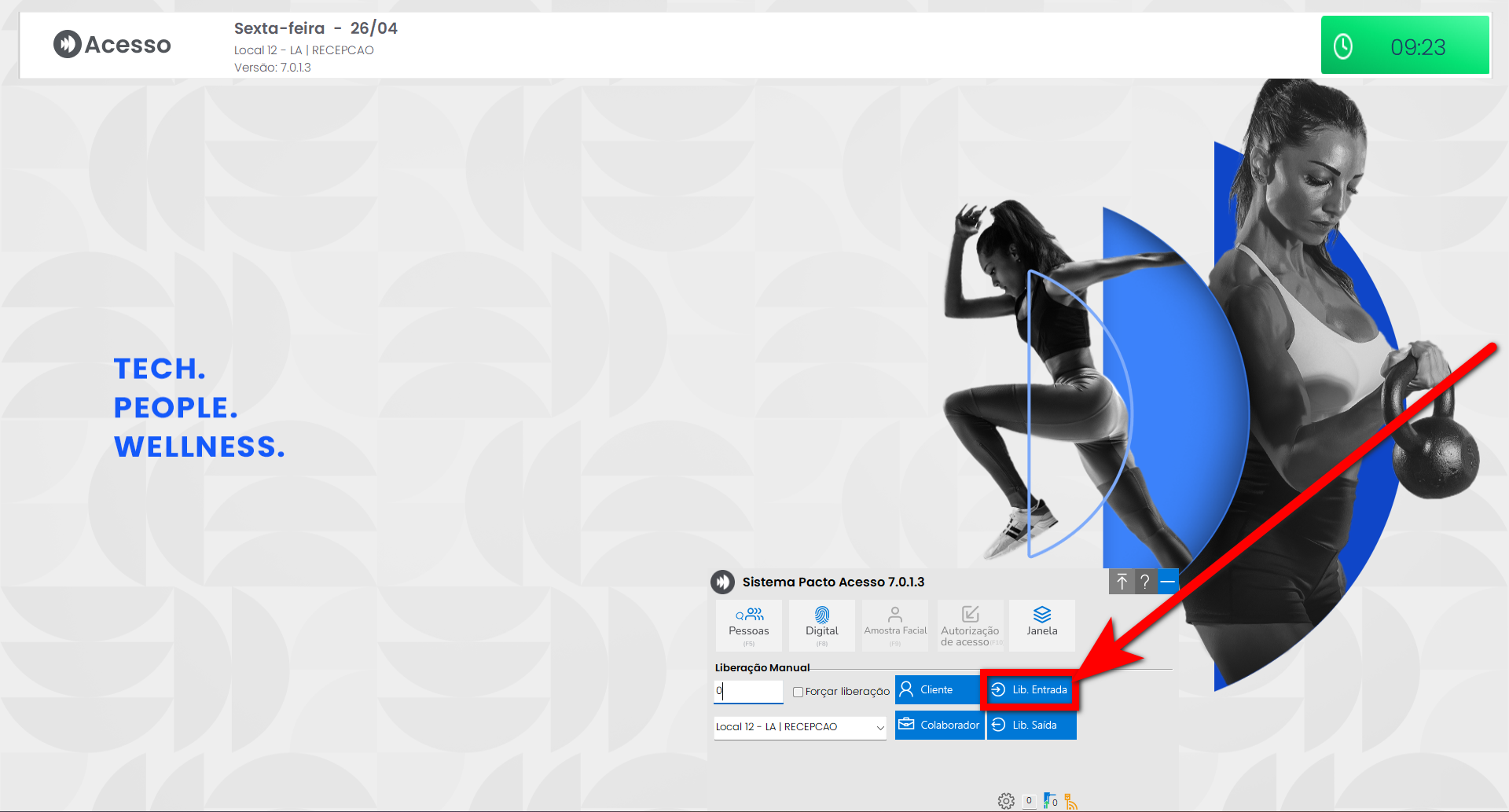 2. Será aberto um pop-up, clique na opção "Lib. Entrada";