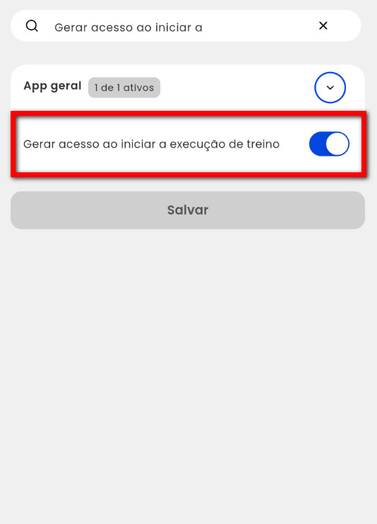 4. Habilite a permissão “Gerar acesso ao iniciar a execução de treino“;