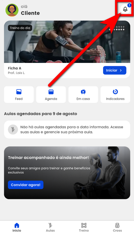 1. Para acessar a notificação, o aluno deve clicar no ícone ;