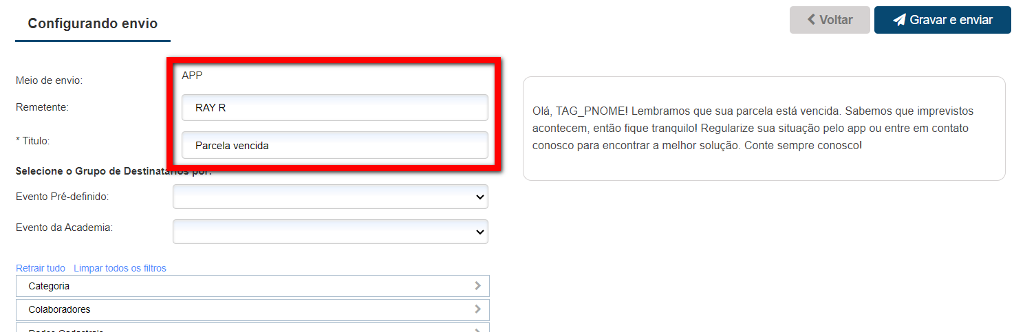 4. Preencha com as informações do “Remetente” e do “Titulo“;