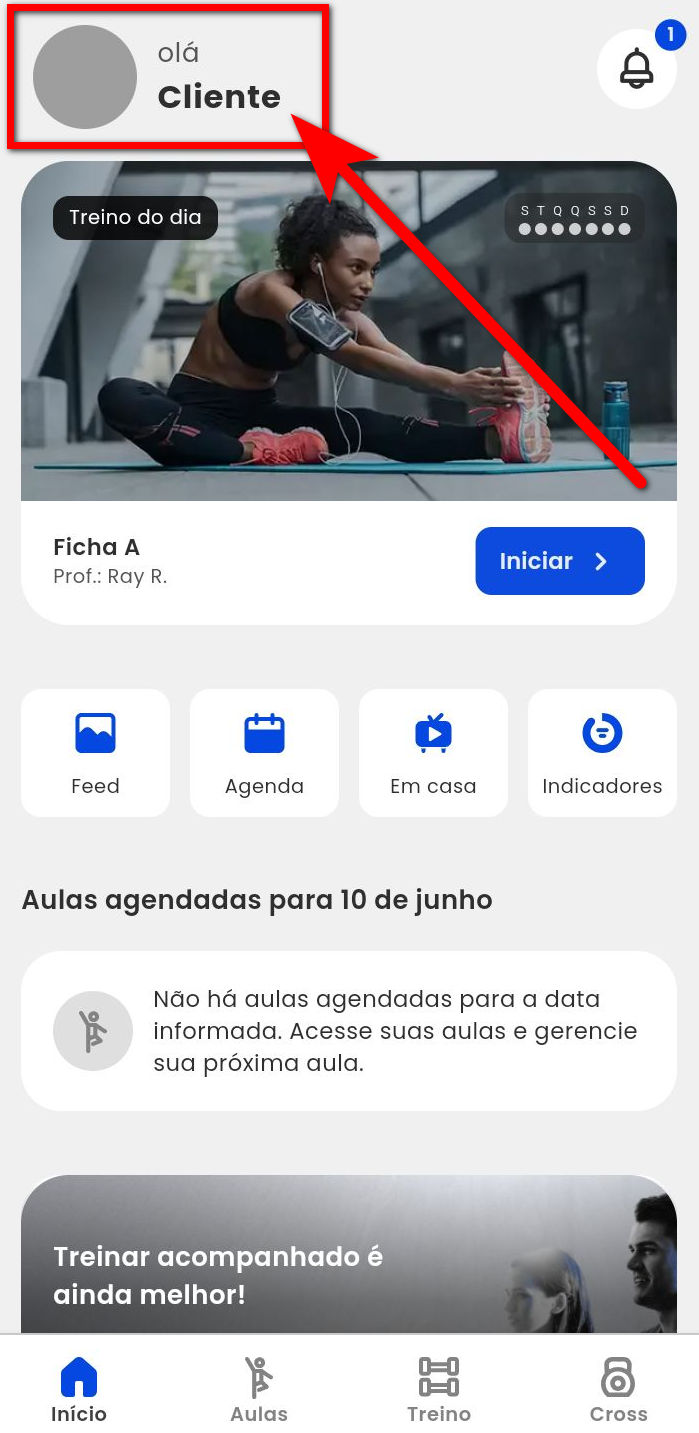 1. Após acessar o aplicativo, clique no ícone com a foto no canto superior esquerdo;