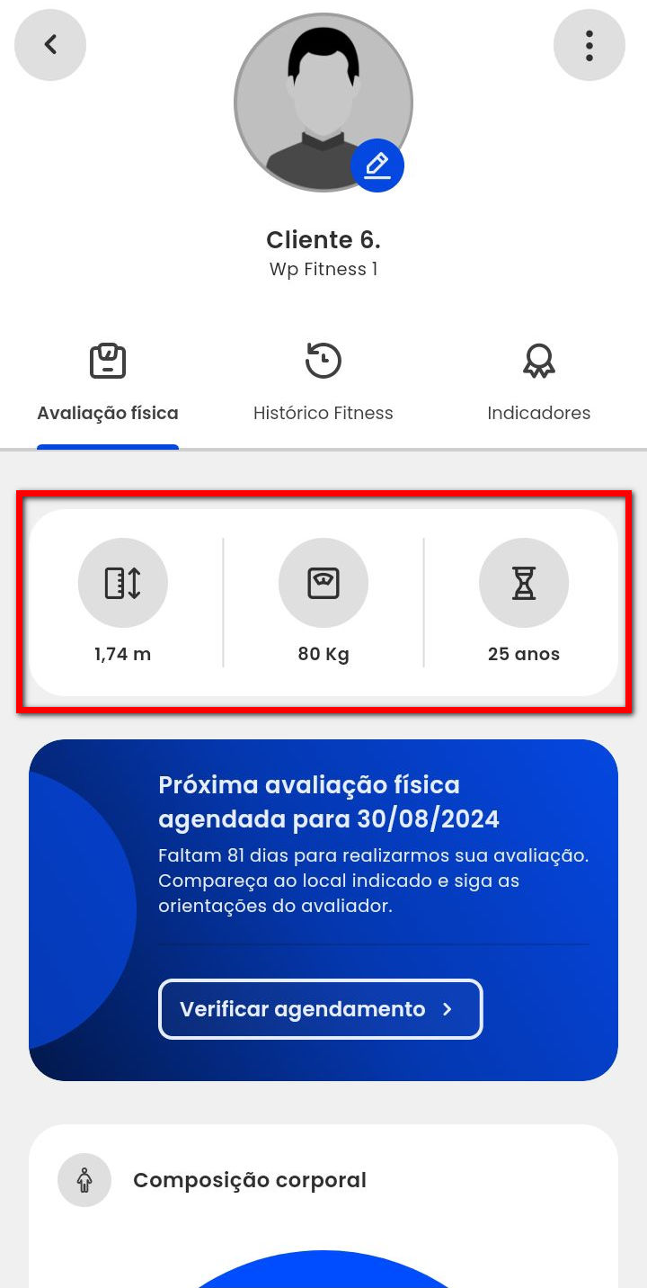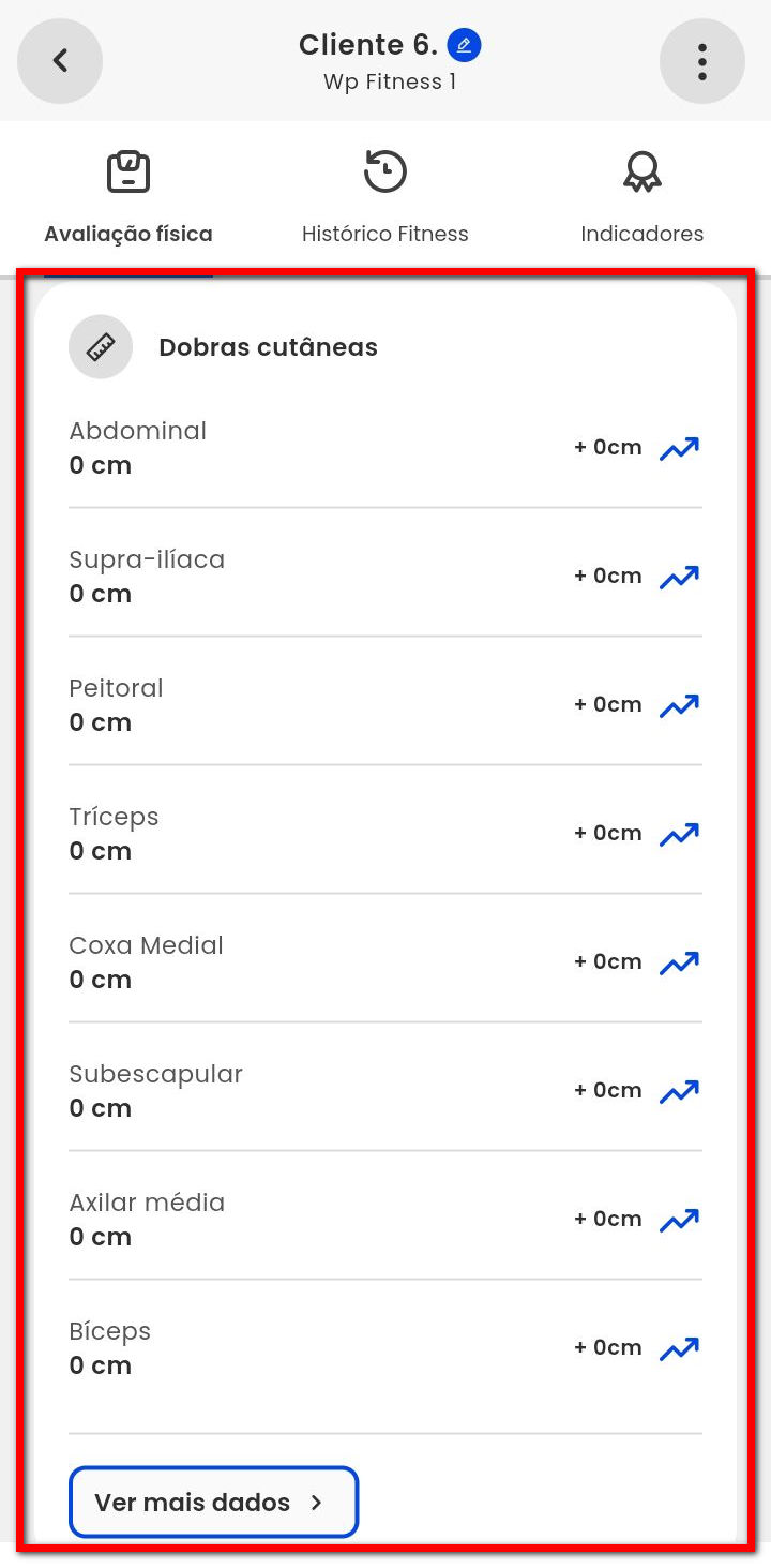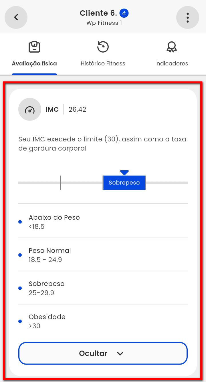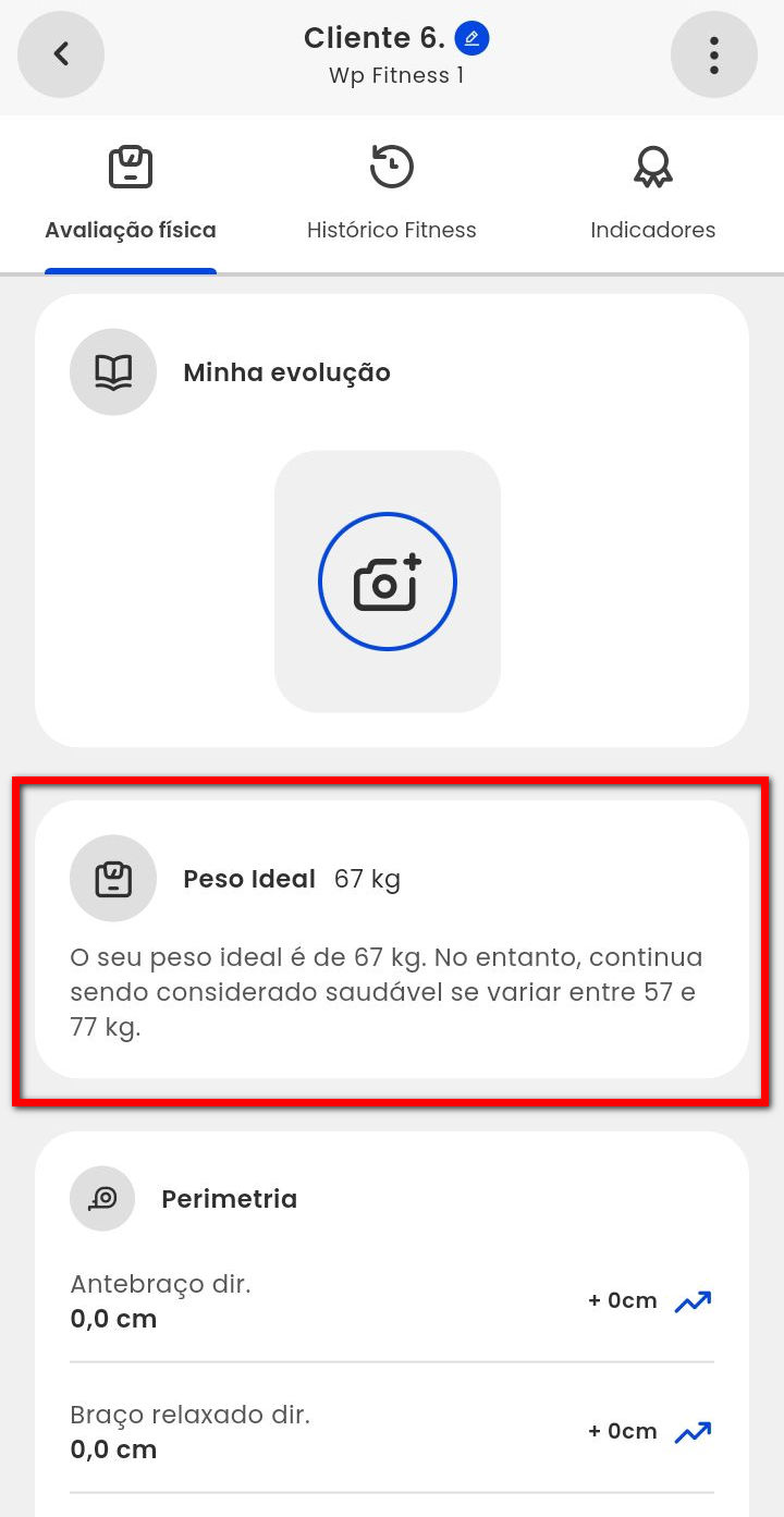 Observação: os dados apresentados serão alterados automaticamente, no momento em que for lançado a nova avaliação física.