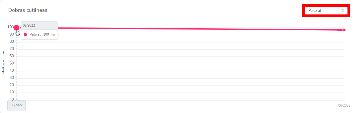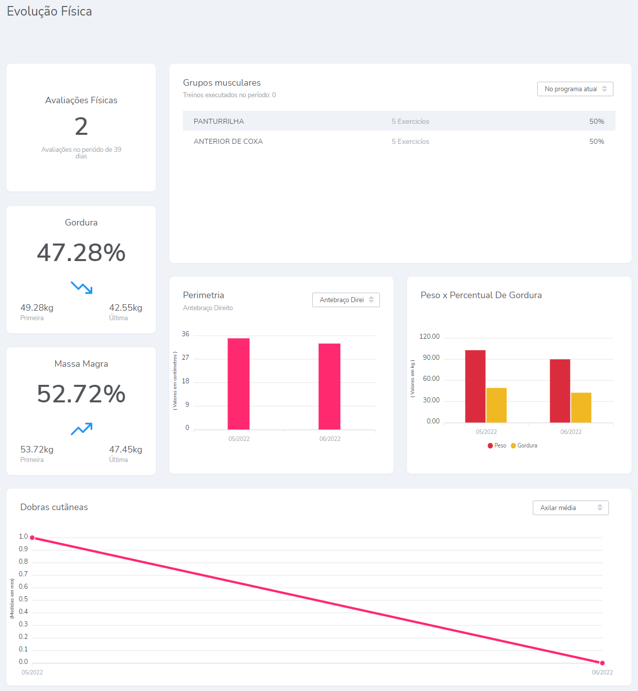 4.7. Dobras cutâneas: neste campo você pode selecionar cada membro das dobras, para realizar uma comparação individual entre a informação preenchida em cada uma das avaliações.