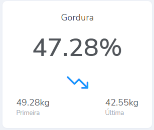 4.3. Gordura: com base nos dados calculados de gordura do cliente, entres a avaliações definidas como padrão de comparação, o sistema vai calcular a diferença entre ambas, e apresentar a porcentagem indicando se o cliente ganhou ou perdeu gordura;