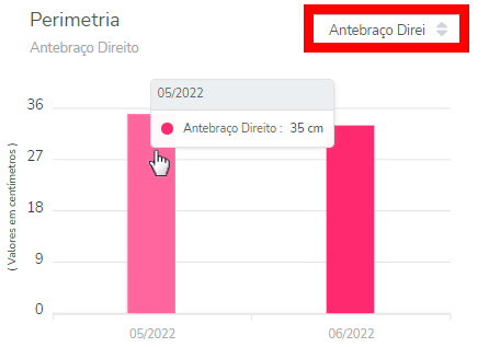 4.5. Perimetria: neste campo você pode selecionar cada membro da perimetria, e realizar uma comparação entre a informação preenchida em cada uma das avaliações;