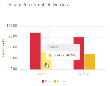 4.6. Peso x Percentual de gordura: este campo permite que você compare o peso e o valor de gordura calculado para este cliente em cada avaliação lançada;