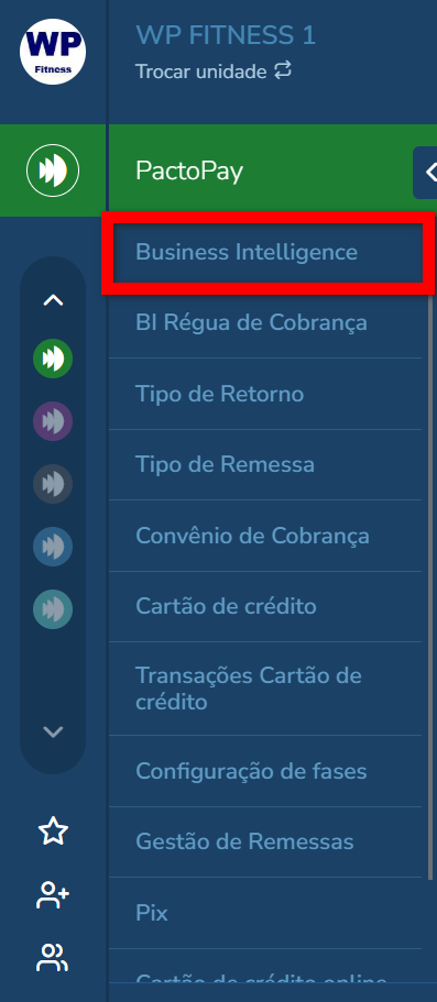 1. No menu do módulo PactoPay, localize e clique em “Business Intelligence“;