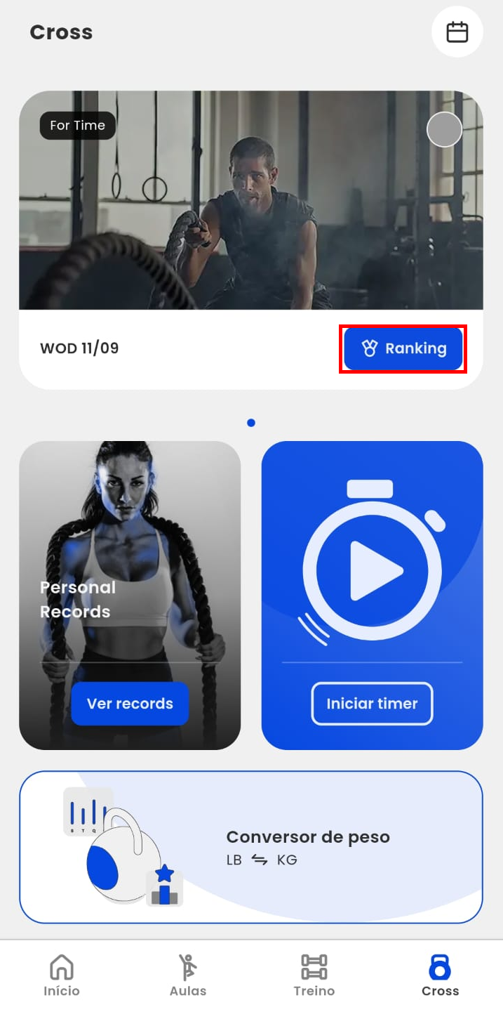 Com a posição no ranking é possível visualizar em qual colocação o aluno ficou após concluir o WOD. Assim, fica mais fácil ele acompanhar seu desempenho e comparar sua evolução com outros atletas.