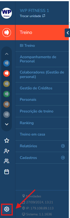 1. No menu lateral do sistema, clique no ícone de "Engrenagem";