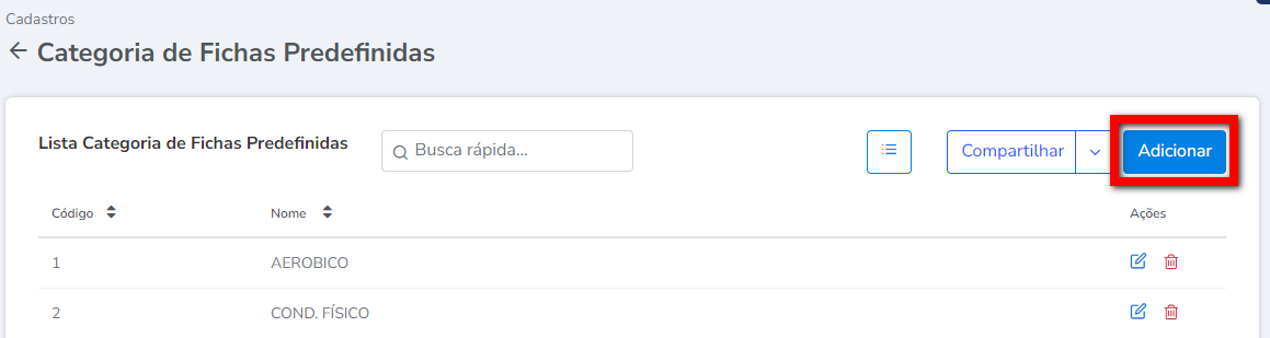 4. Para adicionar uma nova categoria, clique em "Adicionar";