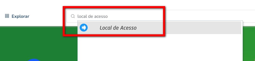 1. Na lupa de busca, pesquise por “Local de Acesso“;
