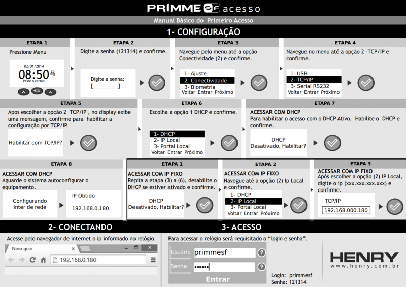 - CONFIGURE O IP DA CATRACA NO MENU DO EQUIPAMENTO, ACESSE AS CONFIGURAÇÕES VIA BROWSER CASO NECESSÁRIO.