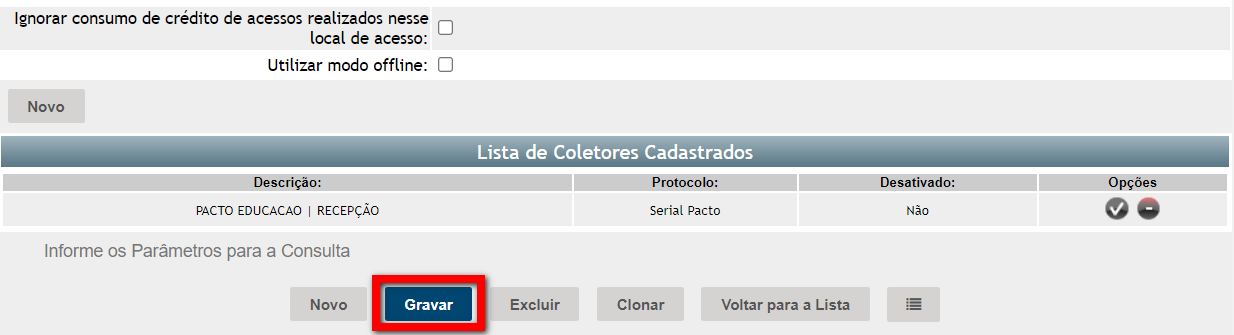 Nesta etapa é necessário realizar o cadastro do seu coletor (catraca). Para isso: