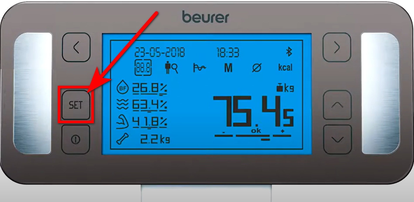 1. Na balança de bioimpedância clique no botão "Set";
