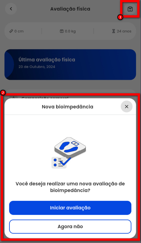 Para saber como fazer a avaliação utilizando a Balança de Bioimpedância, clique aqui.