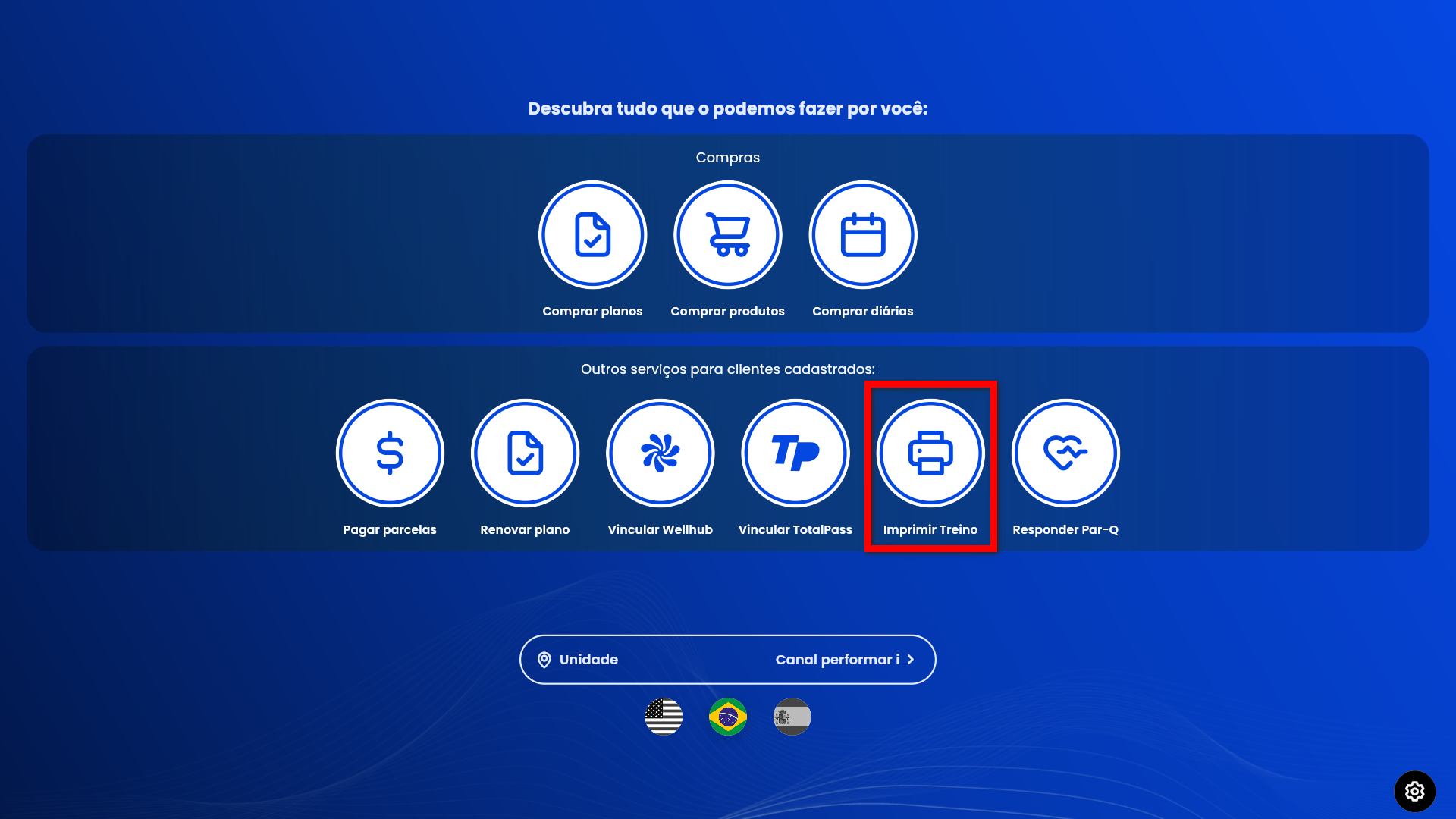 Por meio das configurações do Pacto Flow o aluno pode realizar a impressão de sua ficha de treino caso deseje.