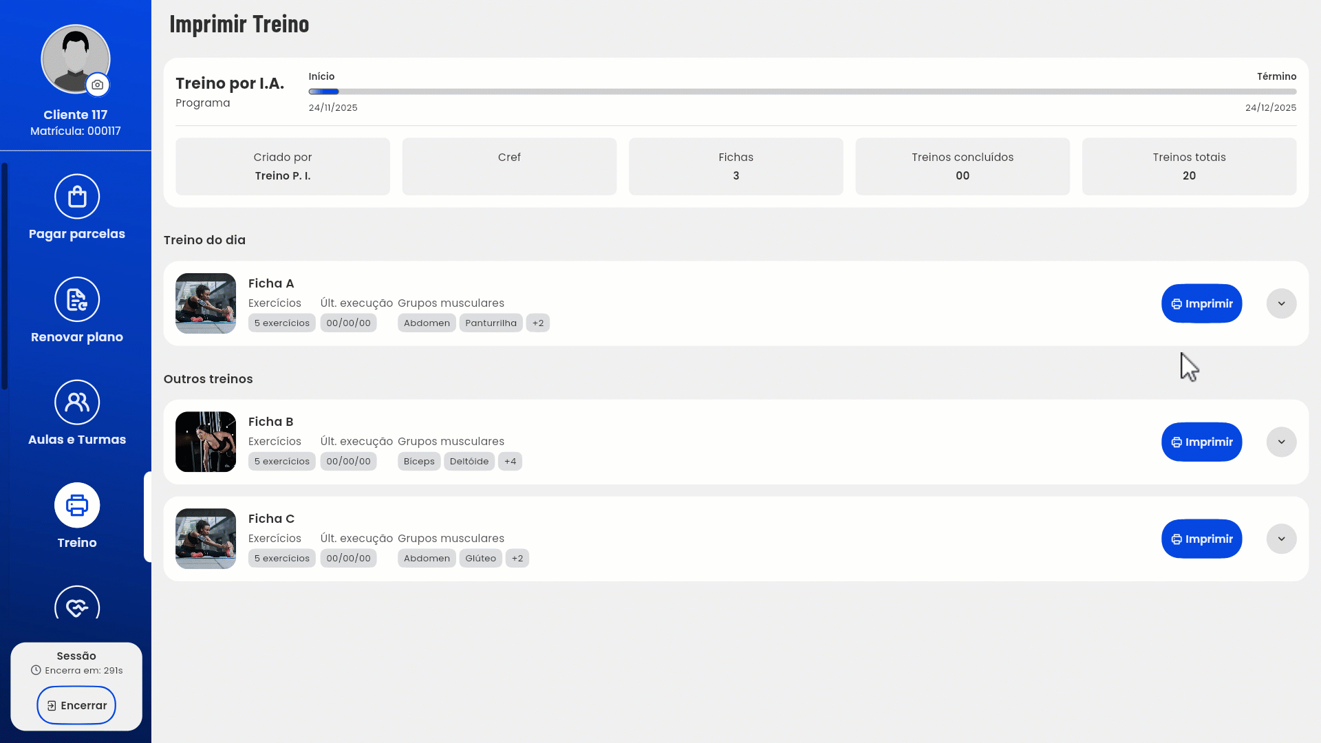 5. Ao escolher a ficha, clique no botão "Imprimir" para imprimir a ficha de treino.