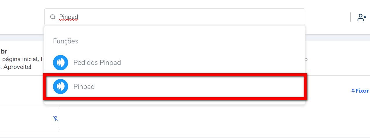 1. No módulo ADM, na lupa de busca pesquise por “Pinpad”;