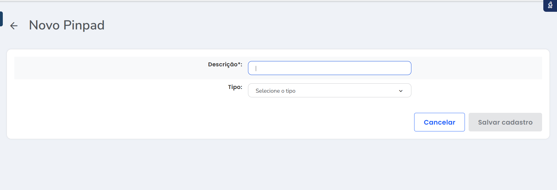 - Descrição: neste campo informe a descrição de identificação desse pinpad;