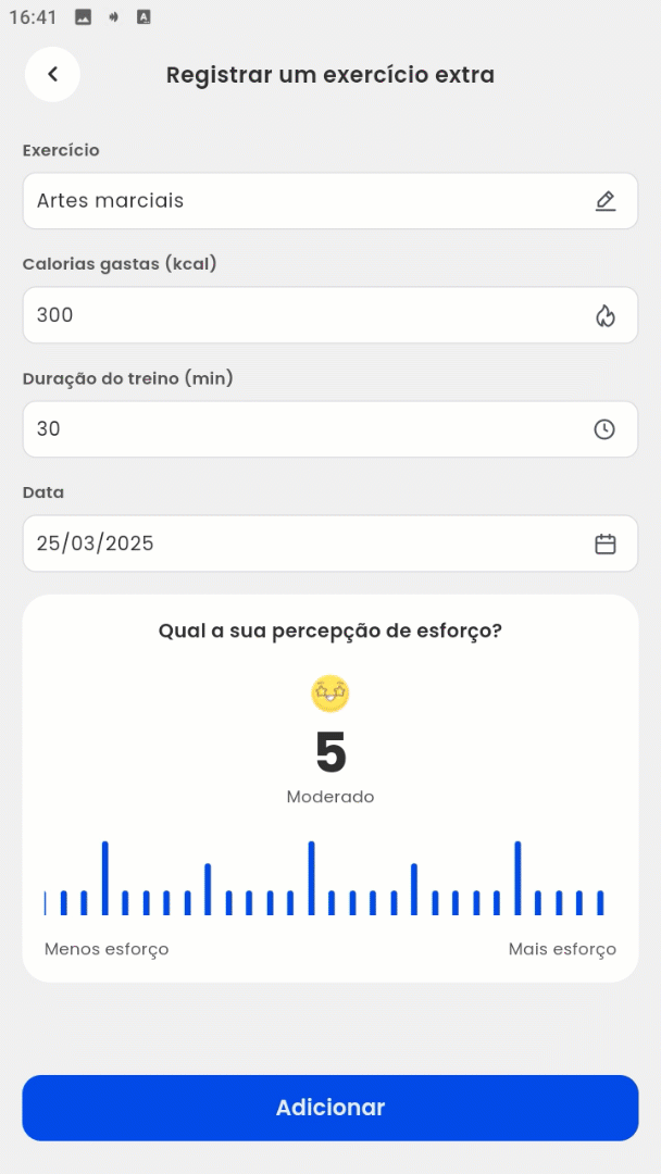 6. Aqui, o aluno pode deslizar a tela para a esquerda ou para a direita para registrar o esforço dessa atividade;