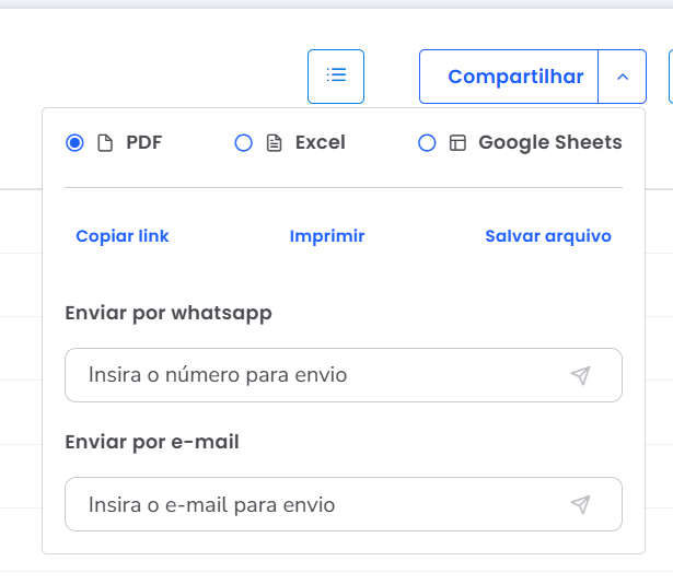 - Enviar por WhatsApp: insira um número para enviar o arquivo diretamente via WhatsApp.