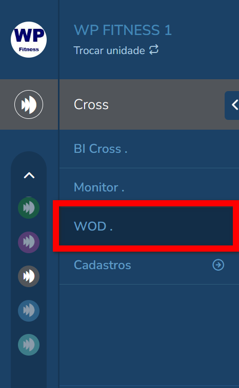 1. No menu lateral do módulo Cross, clique em “WOD“;