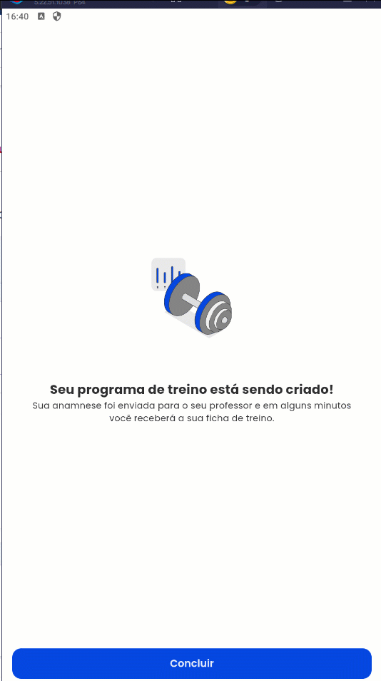 1. Após o término do tempo predefinido, o treino será confirmado de forma automática;