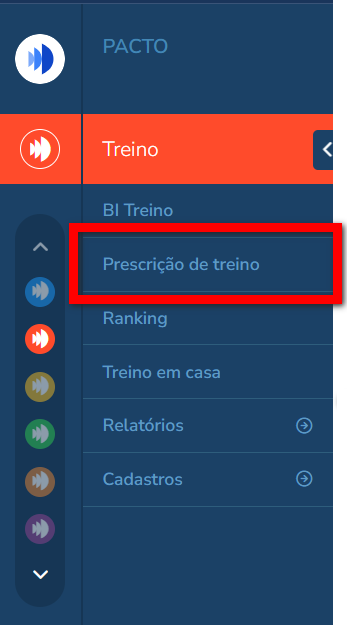 1. No menu lateral do módulo Treino, clique em “Prescrição de treino“;