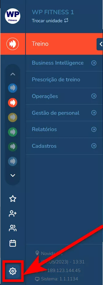 1. Acesse o módulo Treino, e clique na “Engrenagem“;