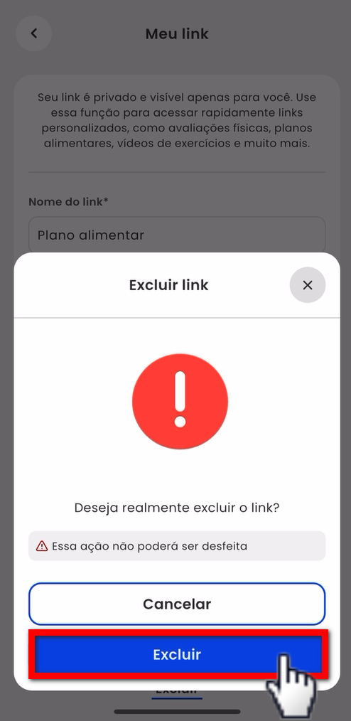 6.2. Será exibida uma mensagem de confirmação da exclusão. Para continuar, clique em "Excluir" novamente;