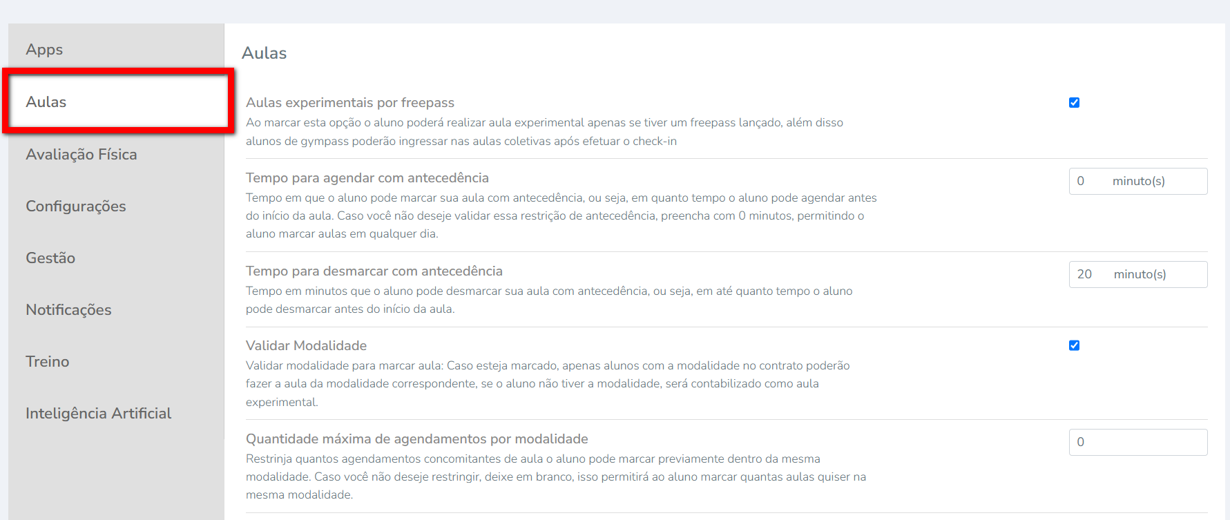 Para saber sobre as configurações da guia Apps, clique aqui. Para saber sobre as configurações da guia Treino, clique aqui.