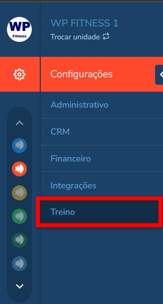 1. Acesse o módulo Treino, e clique na “Engrenagem“;