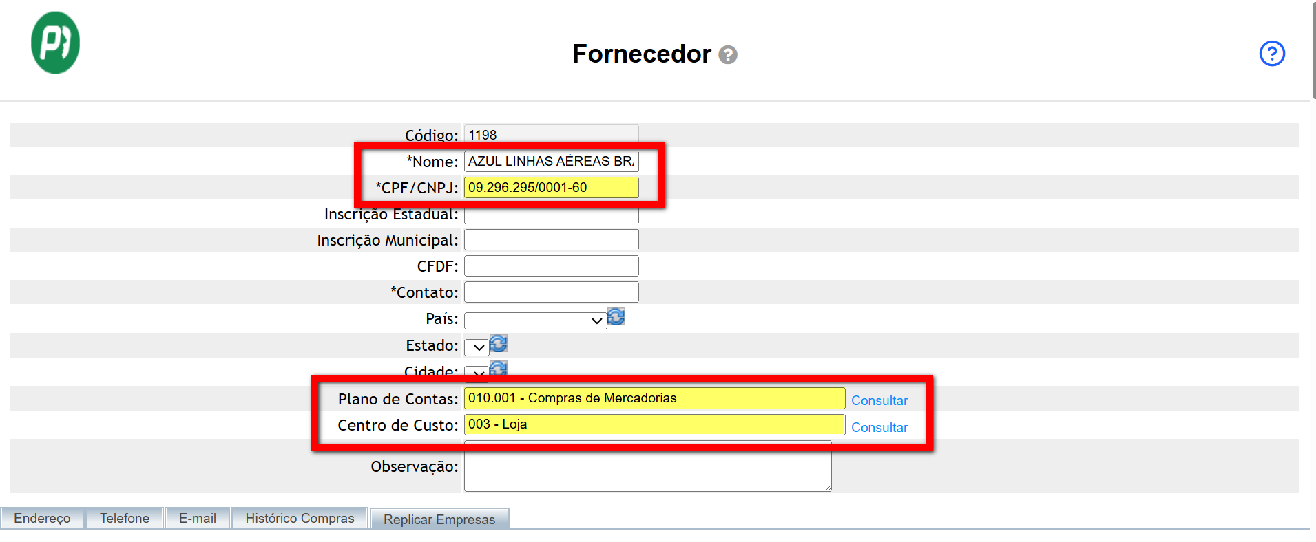 Replicando um cadastro de fornecedor