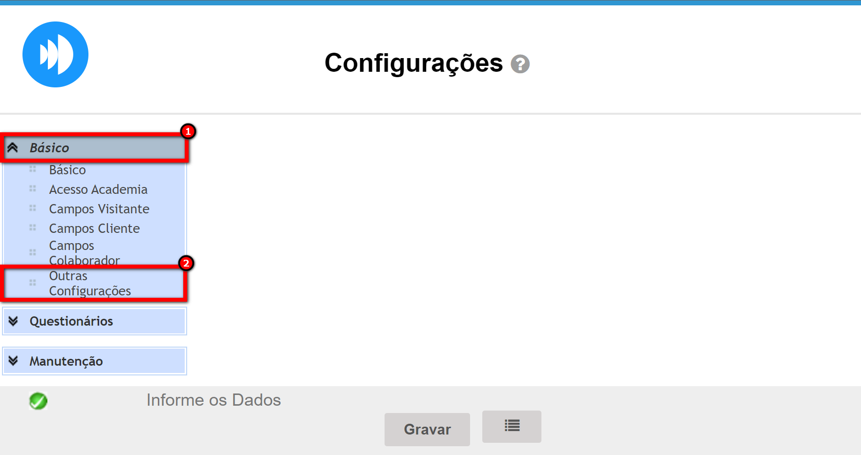 3. Será apresenta a tela de configurações, clique na guia “Básico“, e em seguida na guia “Outra Configurações“;