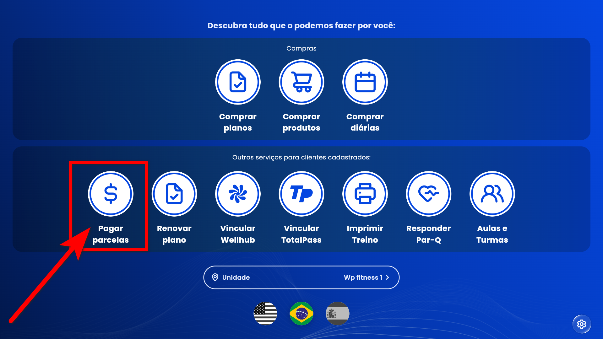 2. Na tela selecione a opção “Pagar parcelas“;