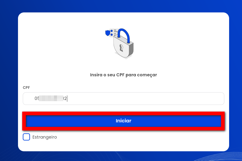 3. Em seguida deve informar o número do CPF para ser localizado o cadastro, após clicar em “Iniciar“;