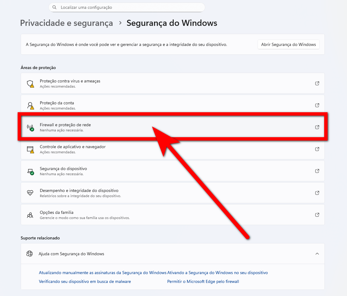 4. Na seção "Segurança do Windows", clique em "Firewall e proteção de rede";