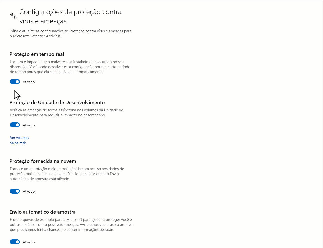 6. Na tela de configurações, você verá a opção "Proteção em tempo real". Para desabilitar, basta clicar no botão para desativar essa configuração.