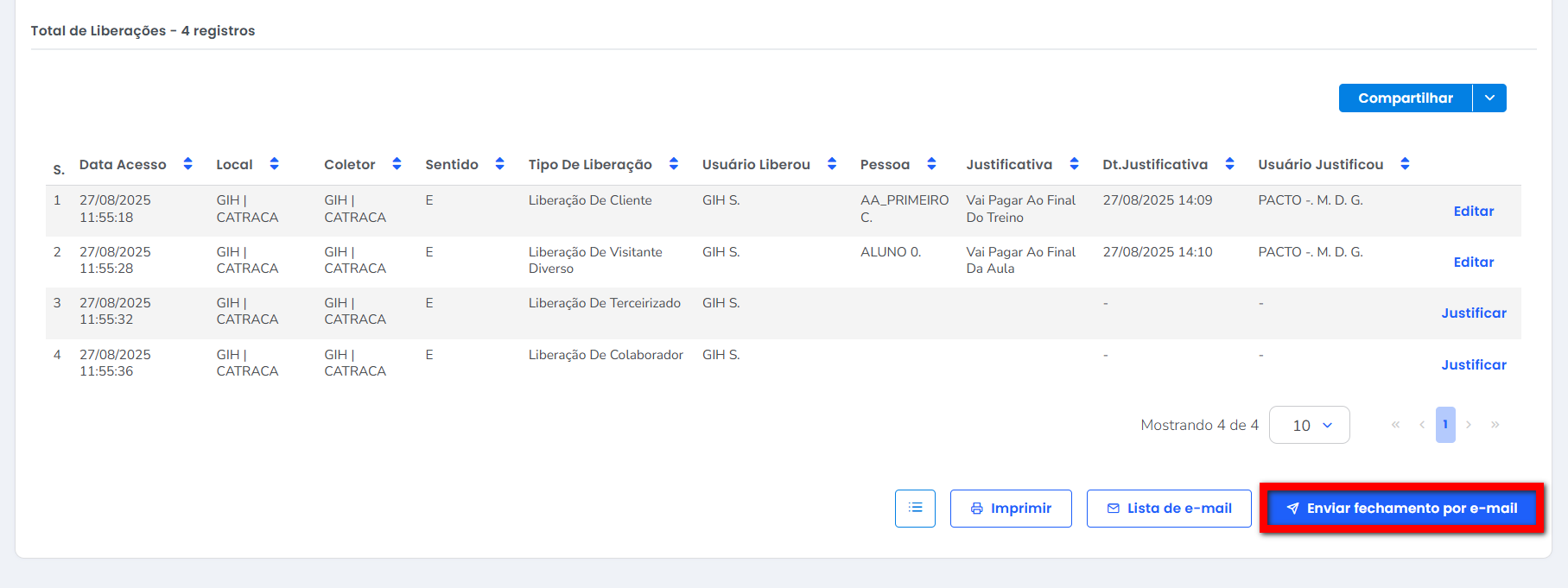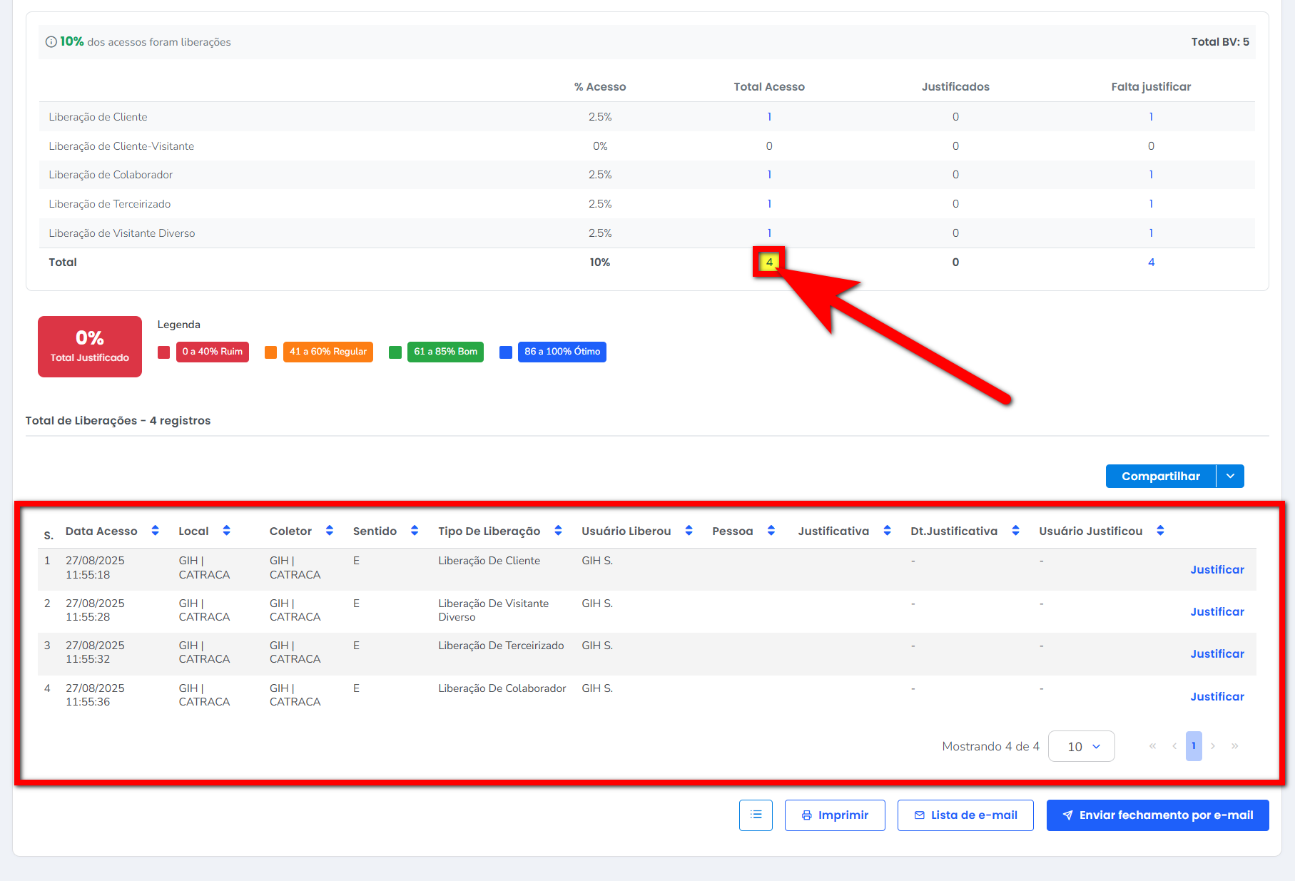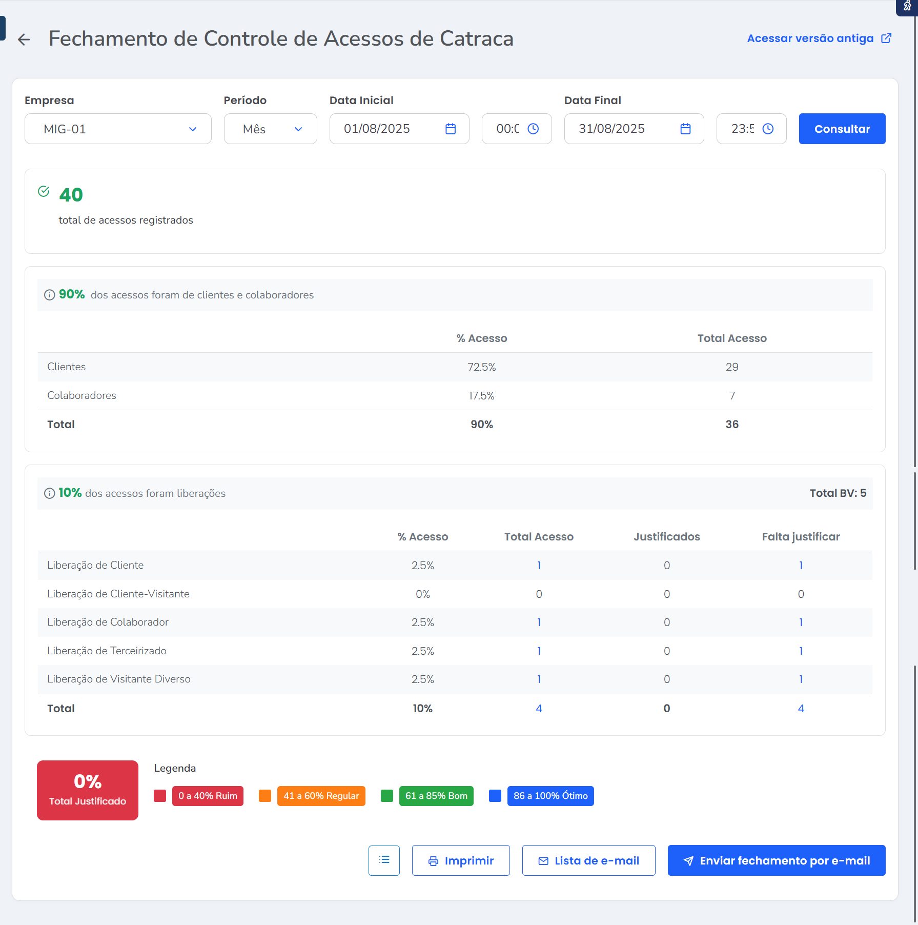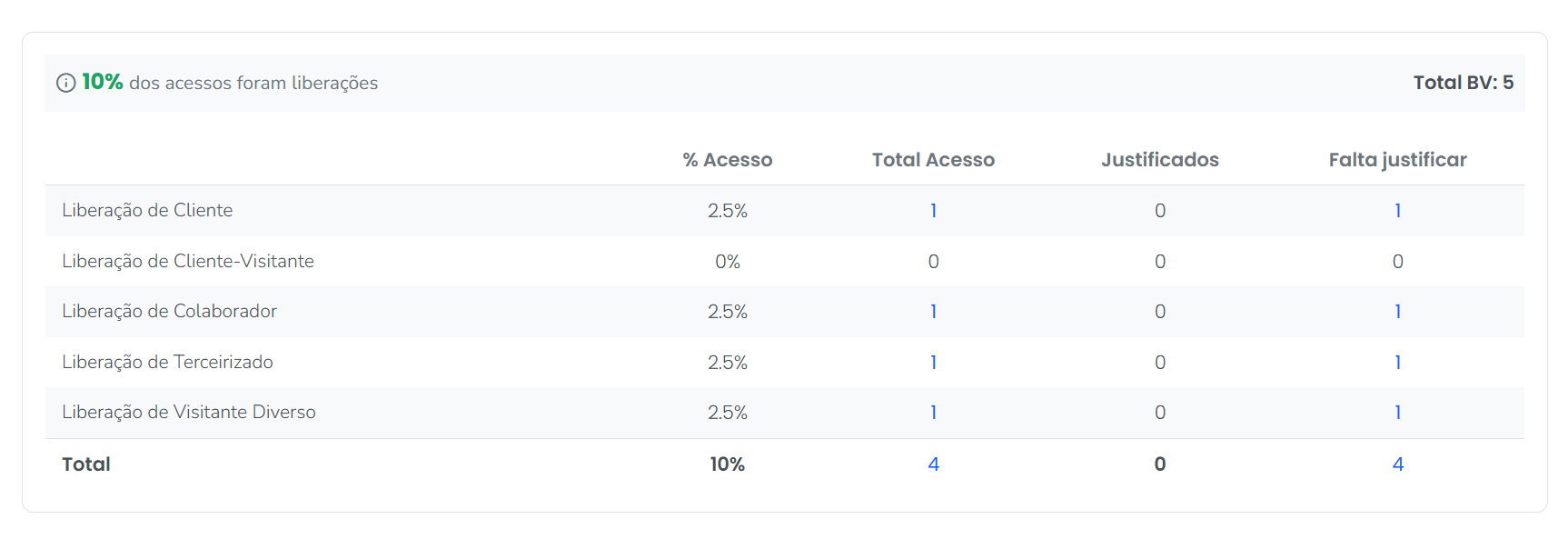 3.1. O número exibido no campo "Total de Acessos" corresponde à soma dos acessos de clientes, colaboradores e liberações manuais;